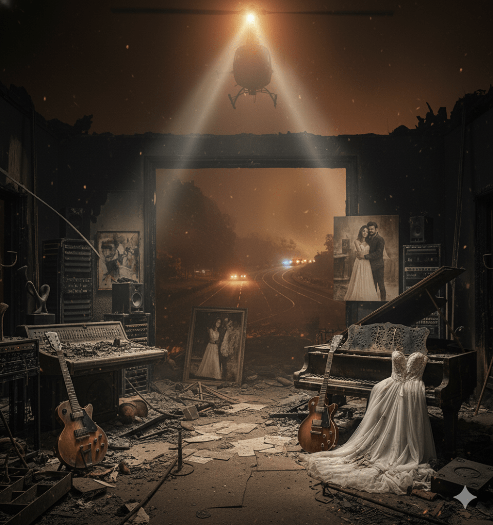 “…Kenan Doğulu’nun ‘bir daha gelmeyecek’ dediği kül olan parçalar ise şunlar: Bugünkü değeri yaklaşık 1 milyon dolar olan stüdyosu, bazı özel kayıtları, dünyadaki önemli müzayedelerden topladığı sınırlı sayıda üretilmiş 15 gitarı, Beren Saat’in 2014’te evlenirken giydiği ikonik gelinliği, düğünlerinde çekilen video ve fotoğraflar, yıllar içinde biriktirdikleri 50’ye yakın tablo ve heykel.”