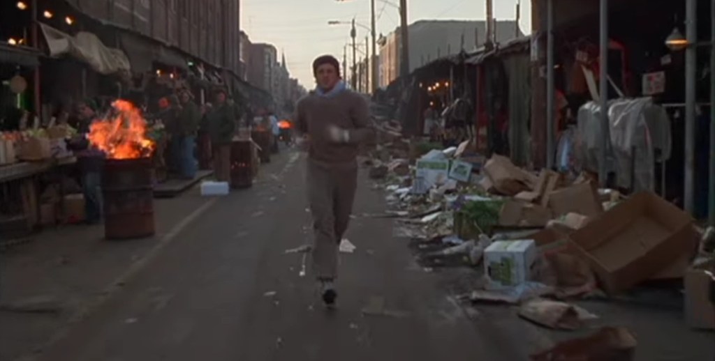 IMDB gibi kaynaklar da koşu sahnelerinin çoğunun ‘gerilla tarzında’ çekildiğini belirtiyor, yani yönetmen arabadan Stallone’u sokağa bırakmış, o koşarken kamerayla çekim yapılıyormuş. Bu sırada karşılaştıkları insanların çoğu çekimden habersizmiş. Bu durum filmde İtalyan Pazarı dışında liman ve genel Philly sokaklarında tekrar ediyor.