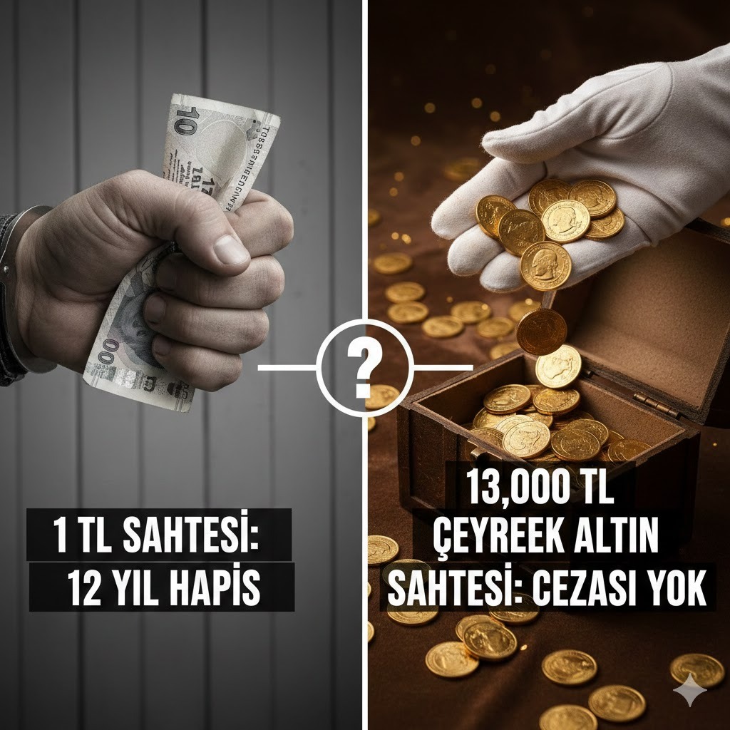Bu iddiada yanlış ve eksik bilgiler yer alıyor. 1 TL gibi resmi paranın sahte basılması çok ciddi bir suç. Türk Ceza Kanunu Madde 197 uyarınca, örneğin 1 TL, 5 TL ve banknotları gibi kanunen tedavülde bulunan parayı sahte olarak üretmek, dolaşıma sokmak ve bulundurmak veya yaymak suç kabul ediliyor ve çok ciddi ceza alabilirsiniz. 2 yıldan 12 yıla kadar hapis ve ayrıca adli para cezası almak mümkün. Bu cezanın herhangi bir ‘sadece 1 TL için geçerli, altın için değil’ gibi bir istisnası yok. TCK’da paranın sahteciliği açıkça suç sayılıyor ve cezası belli.